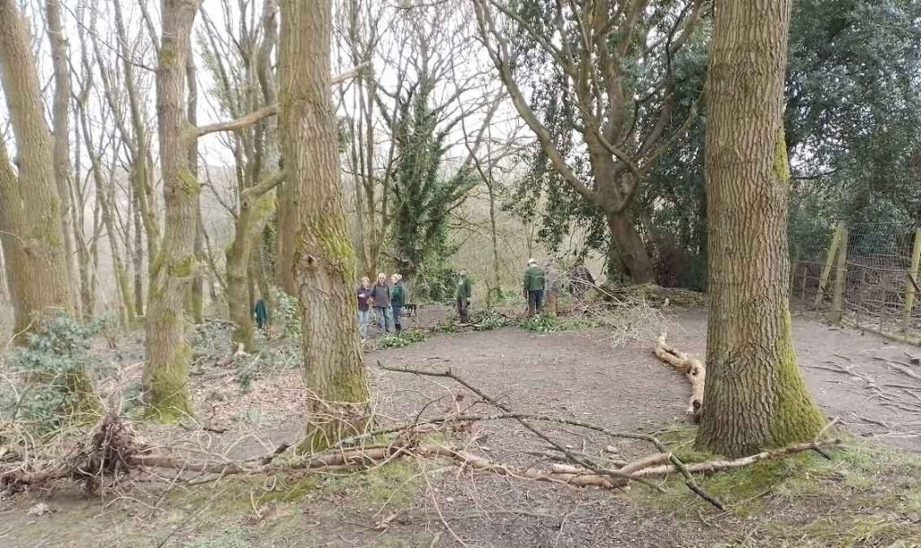 Eleven members turned up at the container with two heading down to the pond where they cleared the grills before returning to join the remaining members for coffee. The main group went to the top of the Nature Park where paths from the back of the Hall and the Round Walk converge. We were trying to demarcate paths for each desire line to avoid trampling of the ground vegetation.