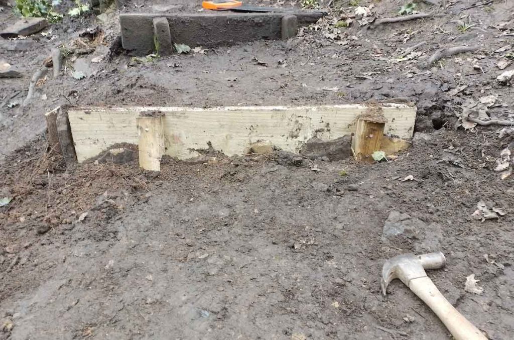Two headed to steps just beyond the top of the Postman’s Path to replace a riser and stobs (see image) before returning to rejoin the rest of the group who were working on the path at the back of Beauchief Hall. Overhanging branches were lopped and the pathway widened slightly in the section to Fred’s Seat. Further trimming took place beyond the seat to the Postman’s Path.